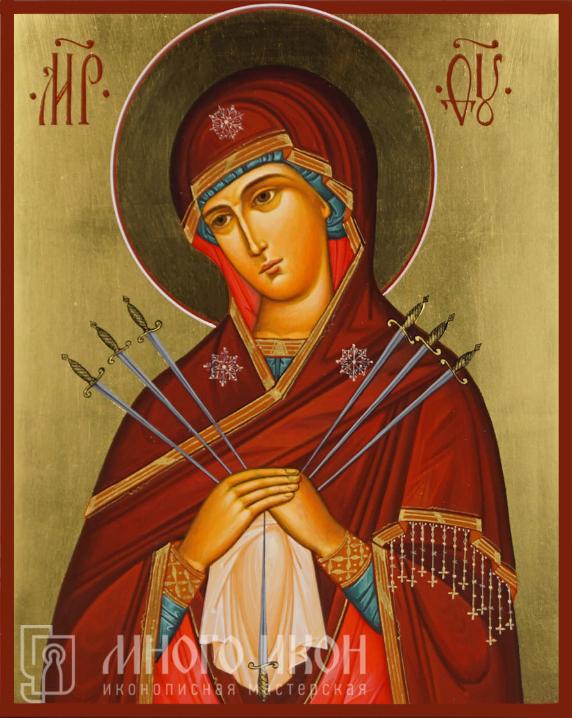 Рукописная икона Божия Матерь Семистрельная.